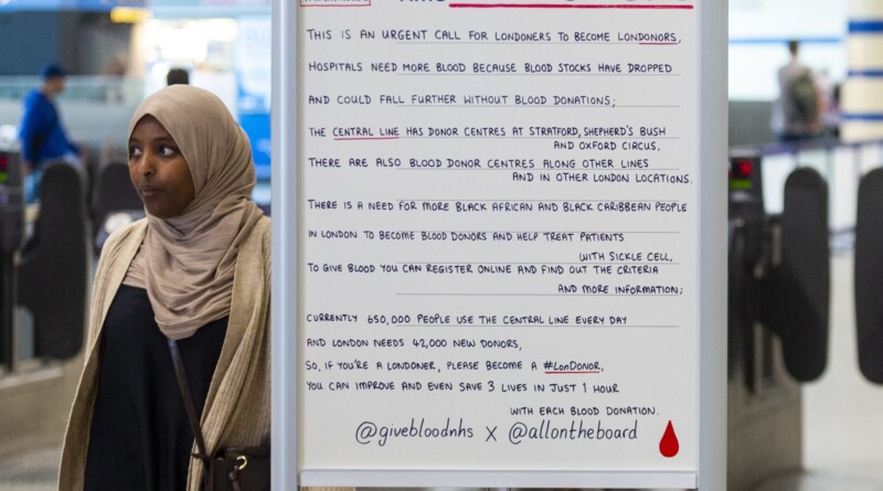 NHS Blood and Transplant has partnered with Transport for London (TfL) to call on people across the capital to become a ‘LonDonor’ by registering to give blood and save three lives in just one hour.
