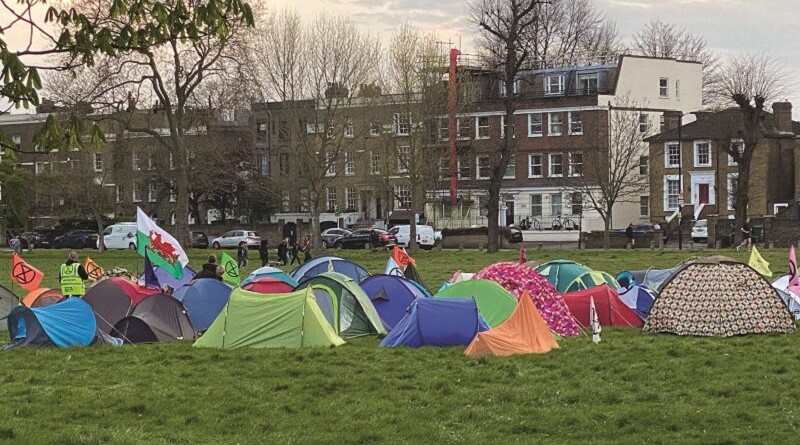 An unauthorised campsite was set up on the edge of Peckham Rye Common as a resting base for activists whilst they carried out their latest wave of protests in the capital. Southwark Council said in a statement they do not support Extinction Rebellion’s use of the park as a camp.