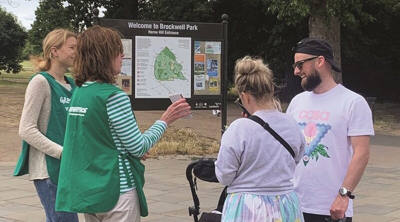 Greenpeace volunteers talk to residents in Brockwell Park Picture: Greenpeace