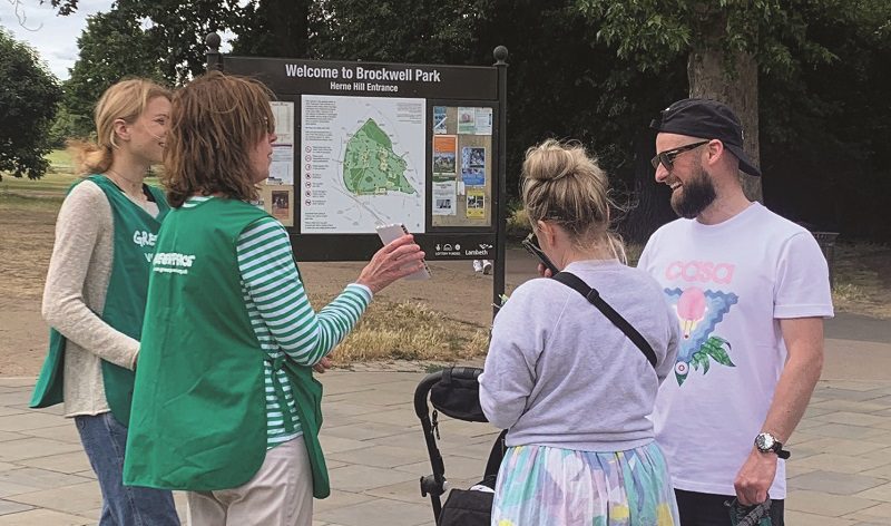 Greenpeace volunteers talk to residents in Brockwell Park Picture: Greenpeace
