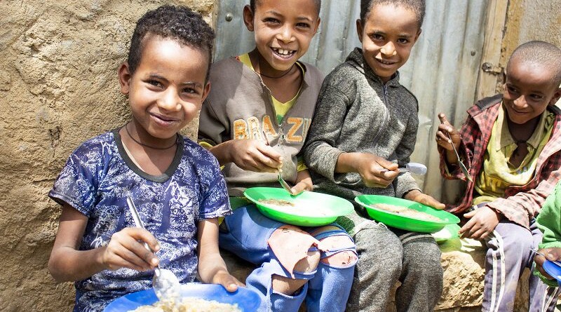 Pictured: Children in Ethiopia enjoy Mary’s Meals in School – Picture: Mary’s Meals