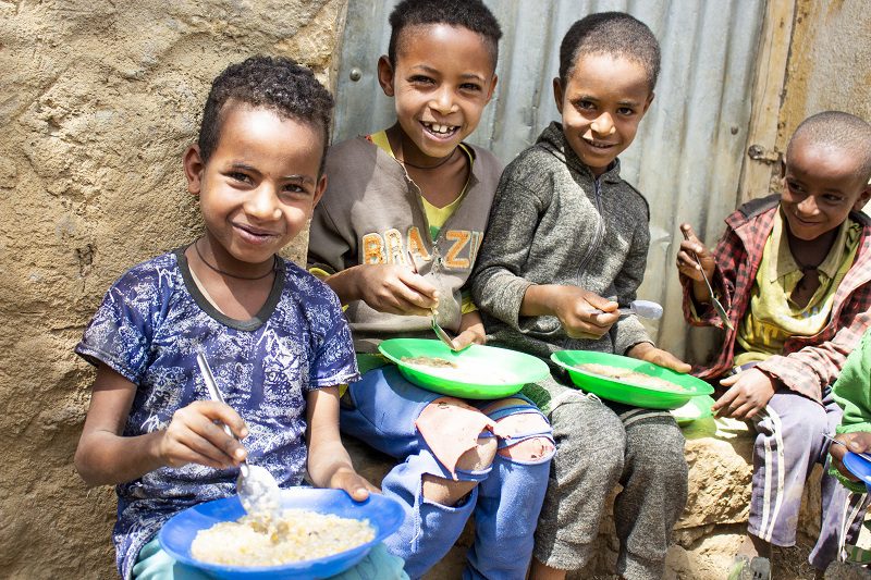 Pictured: Children in Ethiopia enjoy Mary’s Meals in School – Picture: Mary’s Meals