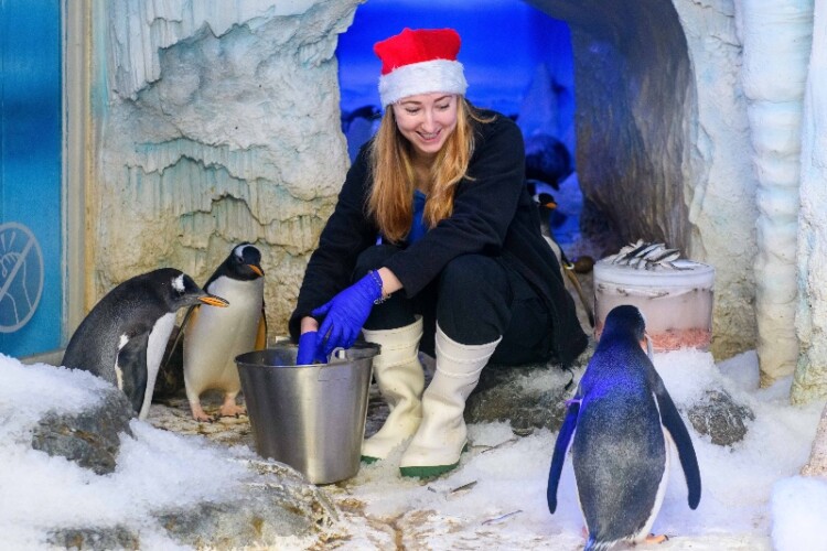 Aquarists were on hand to give out a frozen Christmas cake made of ice and decorated with sprat in the shape of a Christmas tree.
