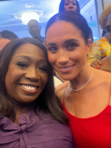 Pictured top: Stephanie Busari-Bediham with Megan Markle during her trip in Nigeria (Picture: Stephanie Busari-Bediham)