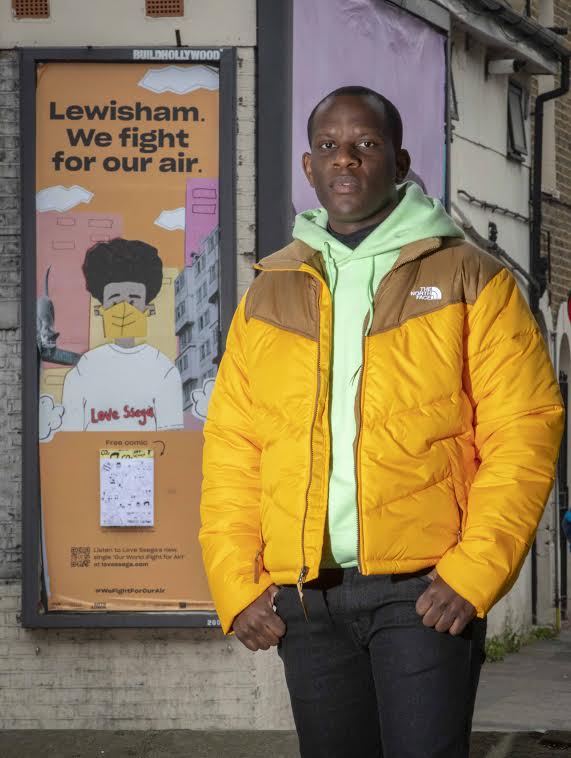 As part of his project, Ssega produced a music video featuring Lewisham residents and commissioned billboards across Lewisham highlighting climate change through a tear-off comic strip.