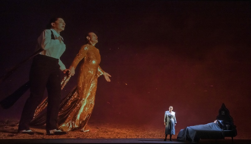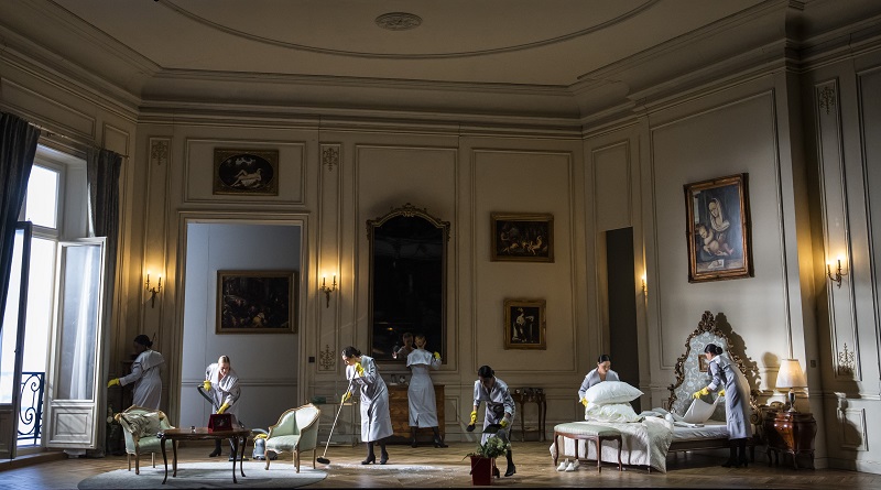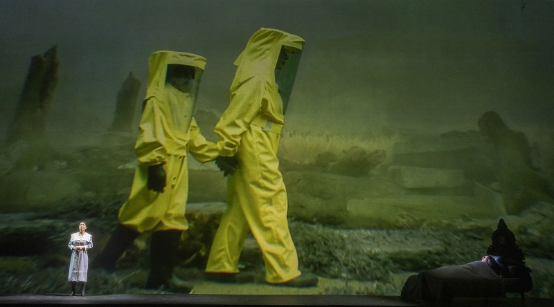 She is never off-stage, and whilst the poor opera singers perform their pieces, poorly lit and dressed anonymously as Marina’s housemaids, they are dwarfed by an enormous backscreen playing mini-movies.
