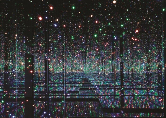 At Tate Modern, Yayoi Kusama’s Infinity Mirror Room installations (on show until June 2022) reflect lights hanging in darkness, taking a finite space and making it go on forever.