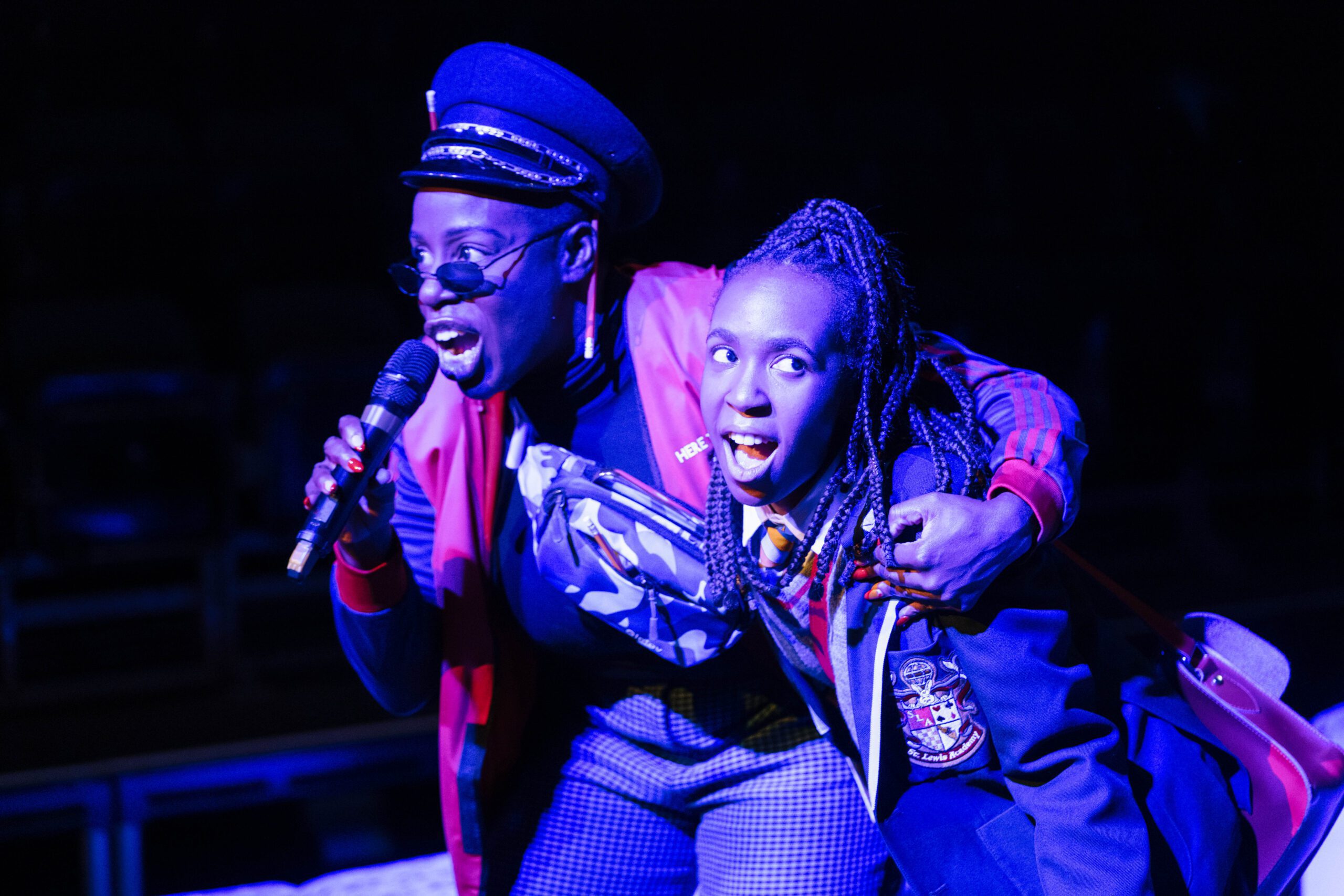 Last week I was lucky enough to catch a schools’ matinee of Scroogelicious at Theatre Peckham. One of the many takes on Dickens’ A Christmas Carol currently running in the capital, this version places the action firmly in its local area, with property developer Ebony Scrooge (KM Drew Boateng) determined to gentrify Peckham regardless of the impact on the local community. Cue a series of visits from ghosts, first the departed founder of his firm Marlene Jacobs (get it?) played by Tomi Egbowon-Ogunjobi, then past (Siphiwo Mahlentle), present (Ellie Clayton) and future (the young performer Tara-Binta Collins the day I was in).