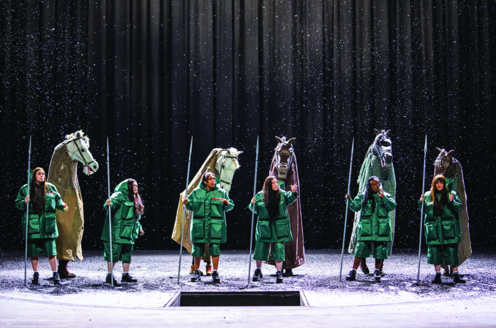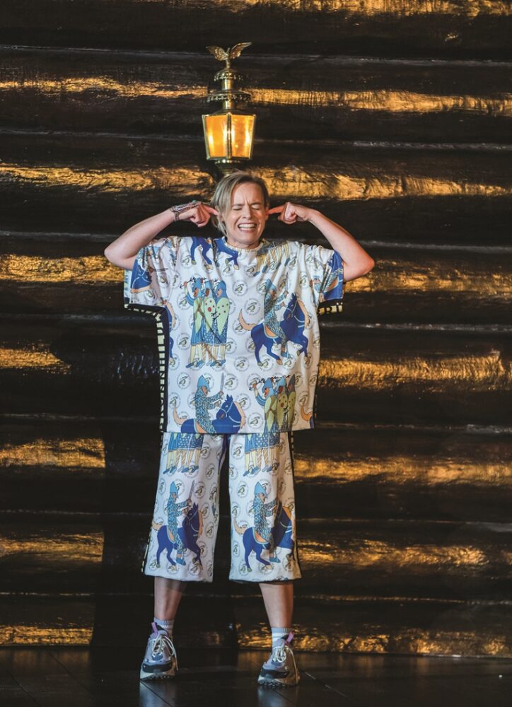 This scene works well in Stewart Laing’s design. However, most of his concept suggests a lumberjacks’ convention somewhere in the backwoods of middle America.