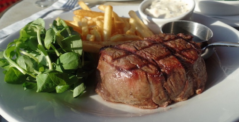 For the Mains – Black Angus 7oz fillet steaks, (aged for 35 days) cooked perfectly medium rare with fantastic flavour, taste and texture, one served with frites, the other, a house salad. Both £22.95 each. Sauces – Béarnaise, Roquefort, beef dripping Merlot gravy or peppercorn £2.25 each.