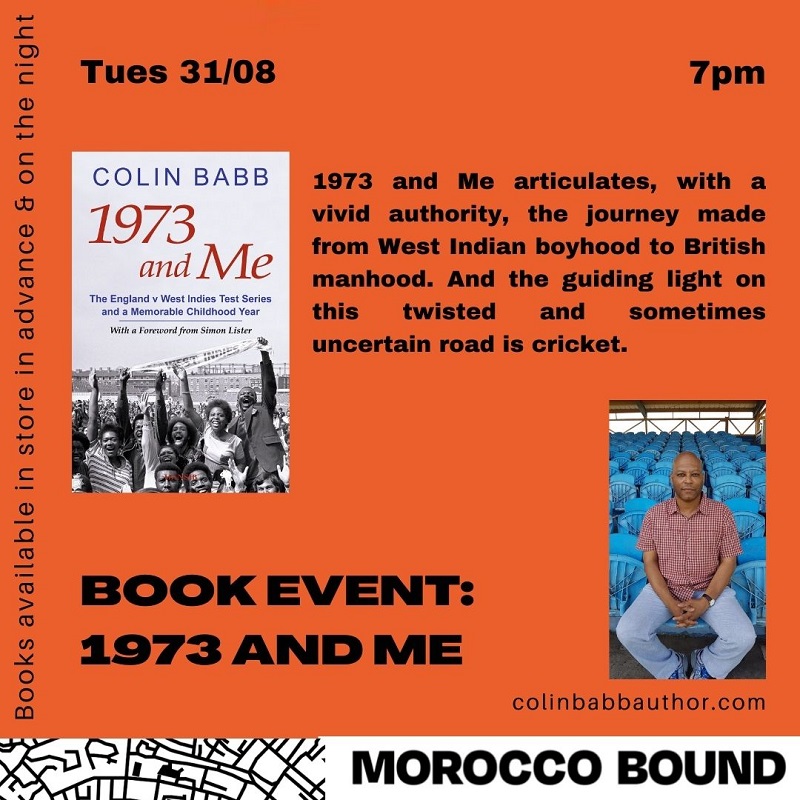 Author Colin Babb’s next promotional event for his book 1973 and Me will be on Tuesday 31 August from 7pm at the Morocco Bound Bookshop, 1a Morocco Street, London SE1 3HB. Expect stories about and around cricket, Johnny Kwango, Red Rum, Guyana, school dinners, South London life in the 1970s and more! The book tells the story of the 1973 West Indies test tour of England and the effect it had on one young black boy and his friends in South London. Clive Lloyd’s century at The Oval was a seminal event. Babb writes in his book: