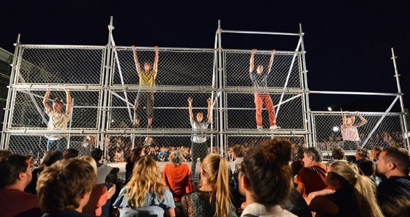 D-Construction is a thrilling, energetic hip-hop dance performance set around a metal scaffold structure that creates a playground, prison and place of expression.