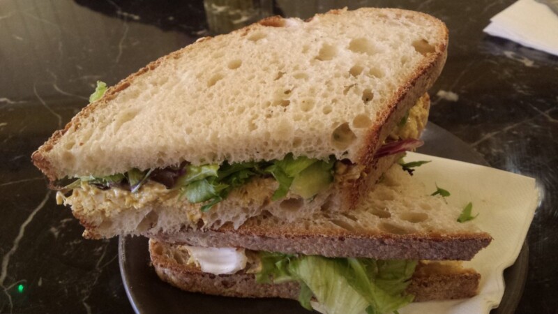 I tried the chicken madras sandwich, a sizeable lunchtime snack, that was surprisingly light, largely due to the slow-rise bread. I loved it. It was a bit like coronation chicken but without the dried fruit (£4.80).