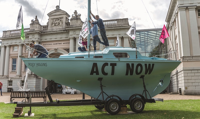 “The use of boats by XR has become a globally recognizable symbol of the movement and the XR boat on view at the National Maritime Museum is an important story to tell in contemporary Britain just as the iconic Cutty Sark or Miss Britain III racing boat, also on display.”