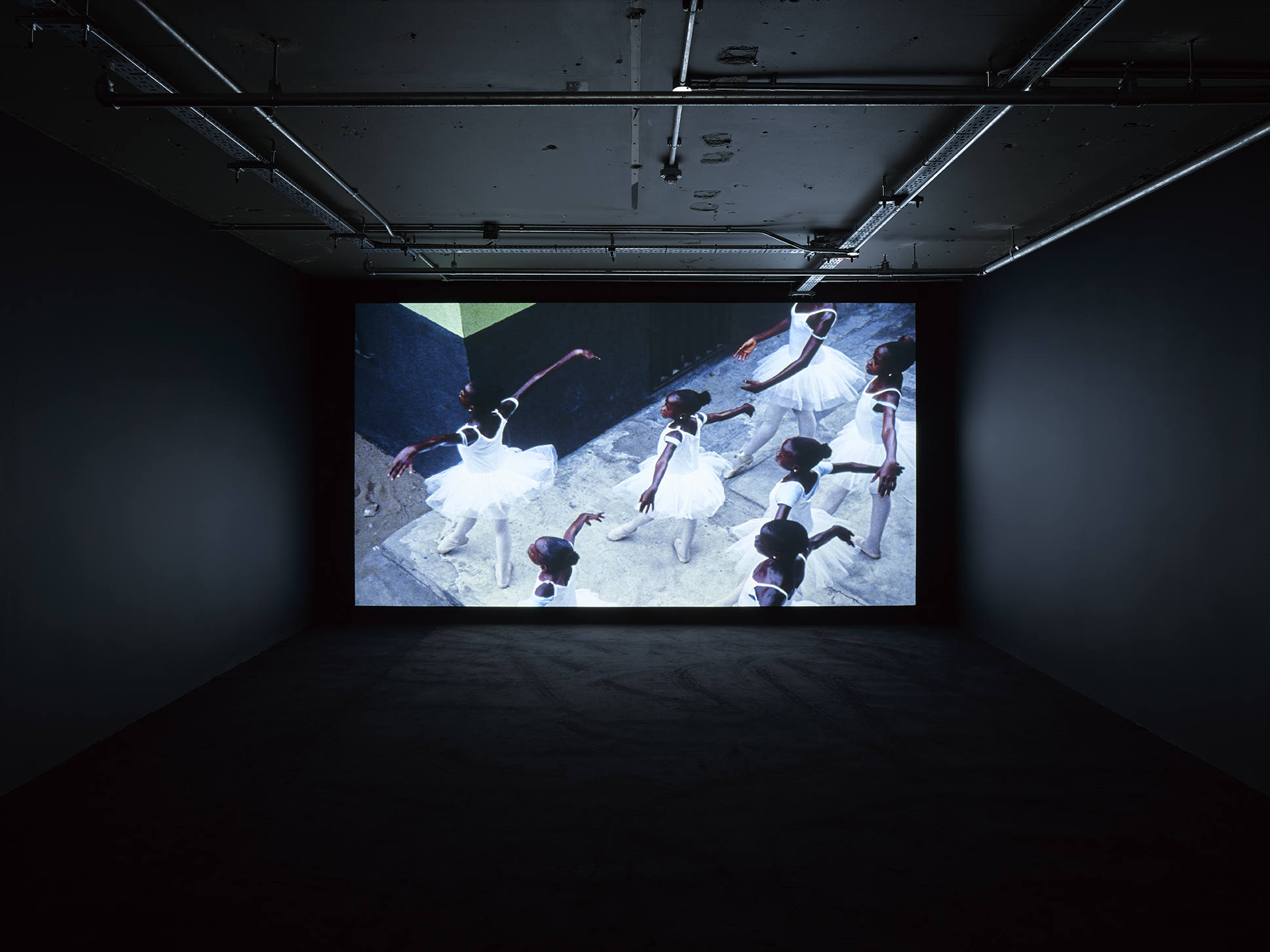 Upon entering the exhibition visitors are met with an continuously looping jazz funk jam, before being thrown at Jeremy Deller lecturing children on the history of rave, the body-popping of Jamaican dancehall filmed by Cecilia Bengolea, and Gabriel Moses’ stunning images of young ballet dancers in Lagos.