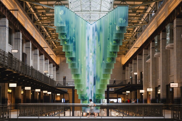 Suspended from the ceiling of the Grade II listed building’s Art Deco Turbine Hall, Field of Dreams emerges as an exploration of the connection between nature, mental health, and self-awareness.