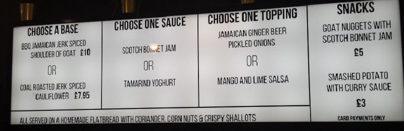 As he explains: “We serve our meat on flatbreads with choices of topping such as Jamaican ginger beer pickled onions, crispy shallots, mango & lime salsa.