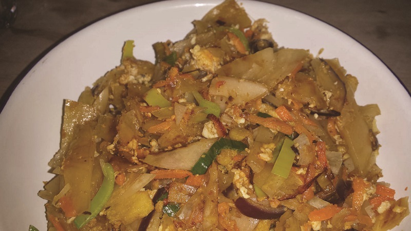 The chef’s dad’s recipe, Jaffna goat curry with potato, added a depth of flavour, and the right amount of spice. But the highlight was the chicken kotthu. A straightforward mix of finely chopped roti, stir fried with vegetables and spices.