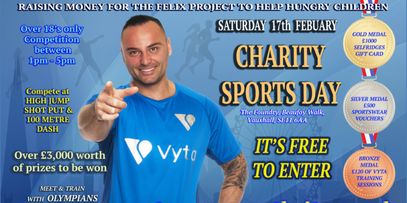 The event is being organised by a new on demand personal training app Vyta and more than £3,000 of prizes are available to win on the day. The sports day is raising money for the Felix Project to help feed hungry children and is free to enter.