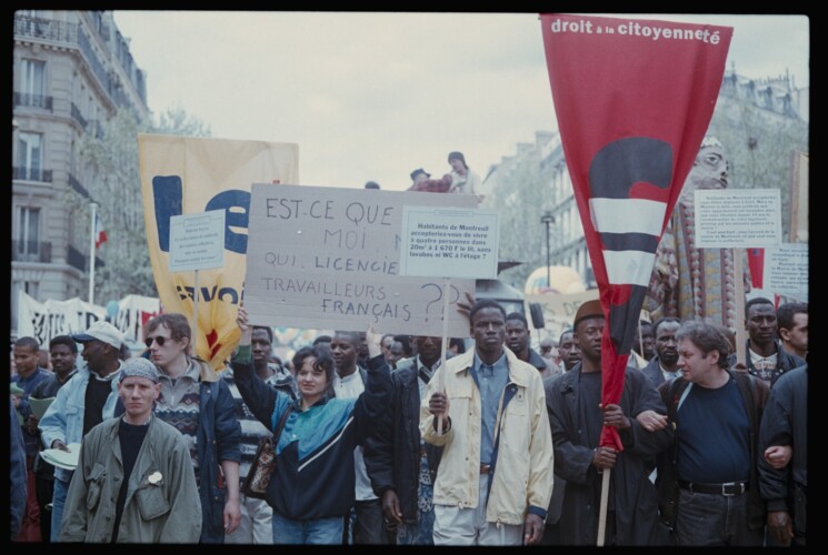 Pictured top: May 1 demonstration in solidarity to the Sans-Papiers in hunger strike at the Halle Pajol before the occupation of the Saint Bernard Church, 1996, Paris (Picture: Courtesy of the Bouba Touré archive)