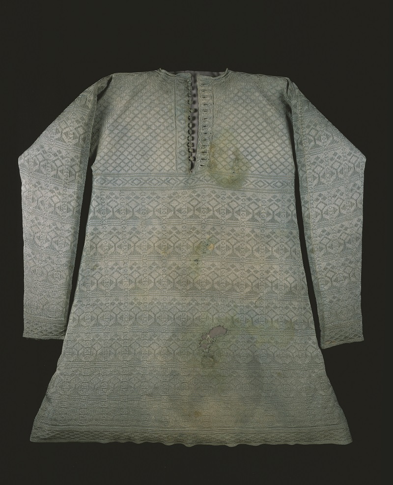 The pale blue silk vest was said to have been worn by King Charles I at his execution which took place 371 years ago.