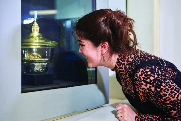 Main Pic: Hannah Wilcock looking at the Winchcombe meteorite