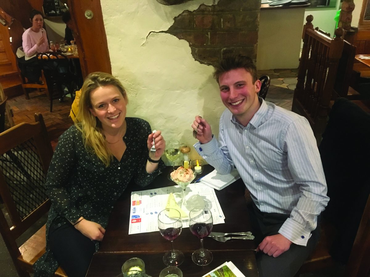 Calum and Marina enjoy the fabulous food at Olley’s Fish Experience