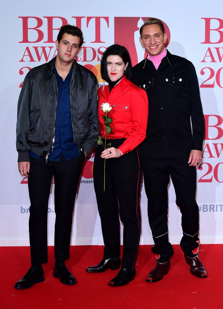 Romy Madley Croft, Oliver Sim and Jamie Smith, also known as Jamie xx from the band The xx attending the Brit Awards at the O2 Arena, London.