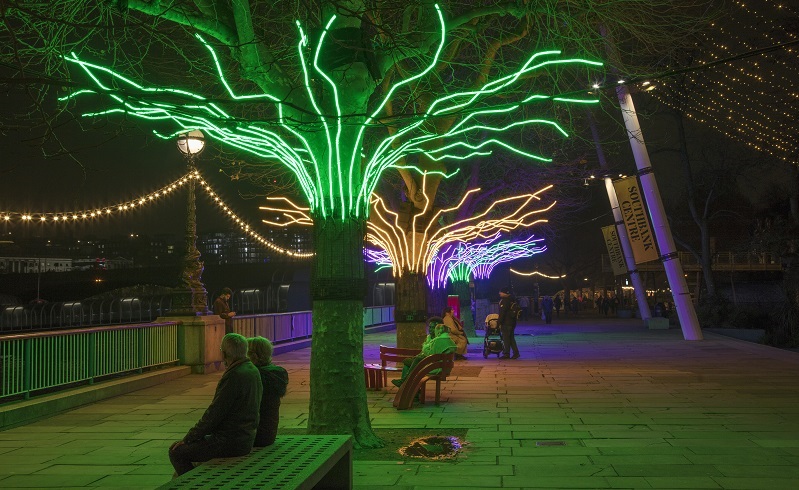 The Southbank Centre will once again illuminate the site’s iconic buildings and the Riverside Walk with Winter Light, a free open-air exhibition featuring 10 lightworks from international artists.