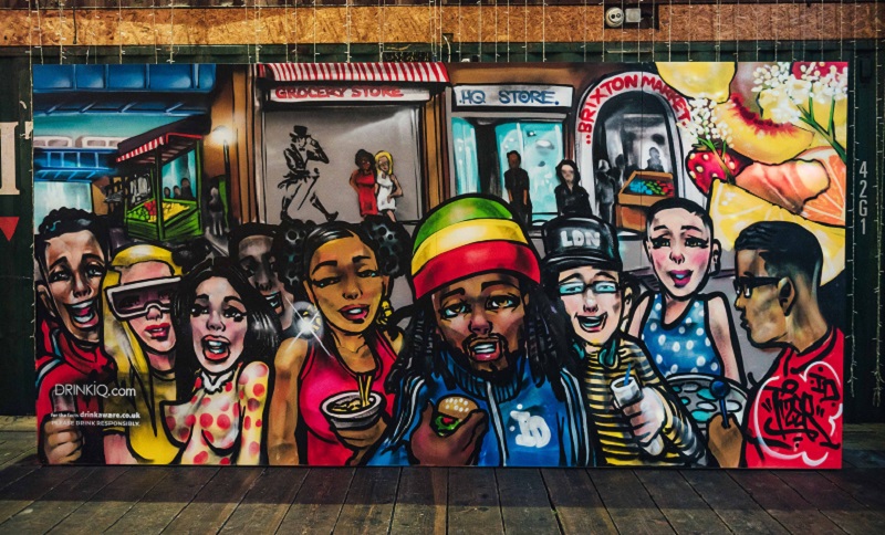 Local Brixton street artist Tizer created the 6.5ftx13ft mural to showcase the nature of Brixton and those who live there.
