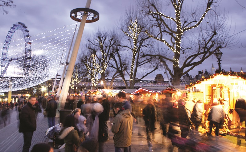 Eat, drink and be merry beside the River Thames at the Southbank Centre’s Winter Market. Expect seasonal goodies, sparkling lights, mulled wine and that festive feeling.