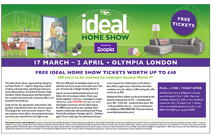FREE IDEAL HOME SHOW TICKETS WORTH UP TO £40