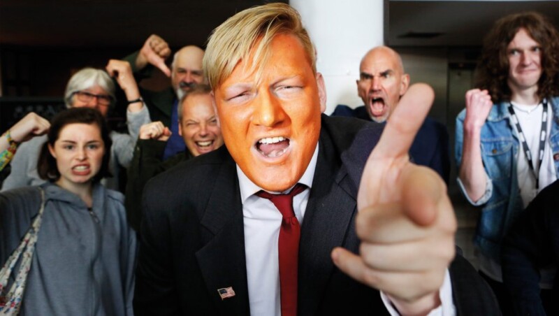 In the semi-improvised show, Jay’s Trump answers whatever questions the audience wants to throw at him, and a suggestion box of questions is already filling up in the theatre foyer with audiences for other shows getting involved.