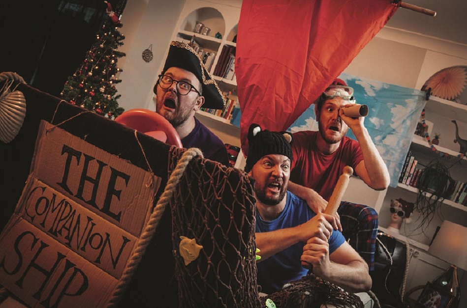 Sofas become boats and wooden spoons become swords to help the cast paddle through sea storms and escape the inside of a whale’s belly, all from the comfort of their home.