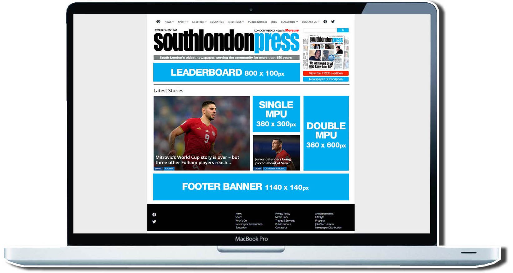 MPU’s are our most popular way to advertise. Footer banners are full website content width and placed at the very bottom of the page.
