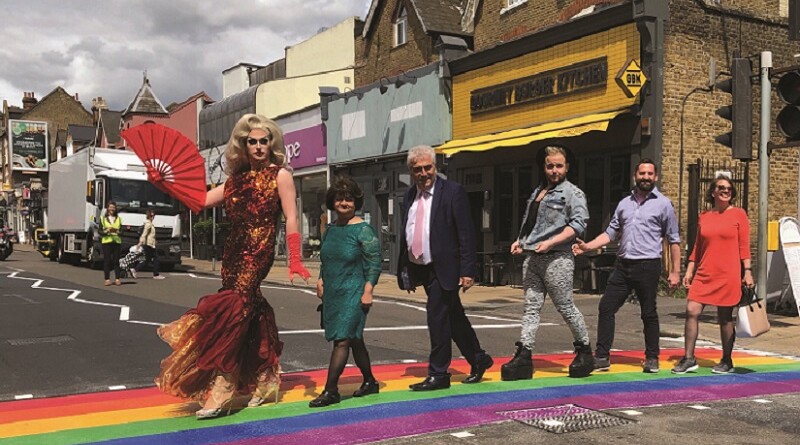 Merton council installs Rainbow Crossing in Wimbledon Broadway to celebrate the town’s inclusivity