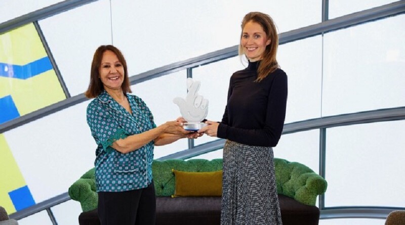 Pictured: Dame Arlene Phillips awards the Art, Film and Culture category to Emily Jenkins
