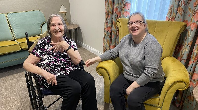 Picture credits: New resident Iris with activities coordinator Alison, Pictures Lloyd Sturdy