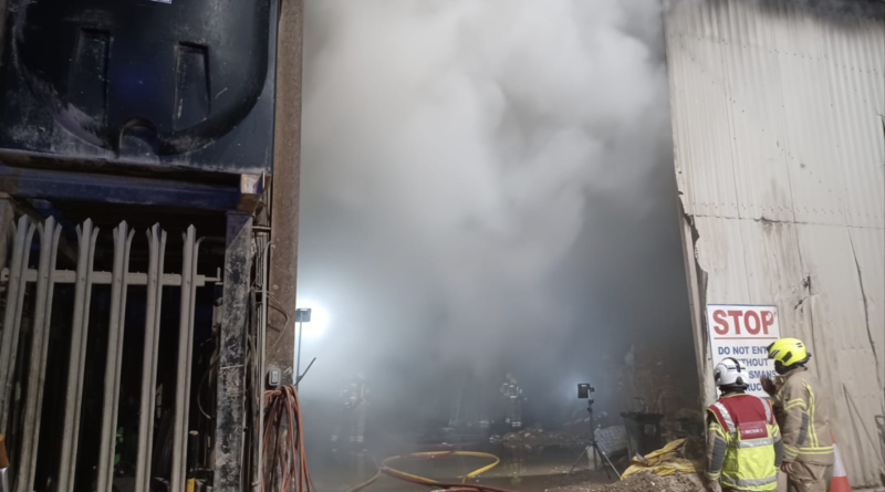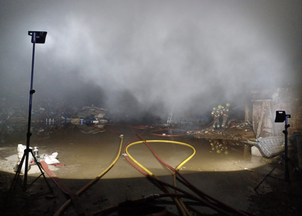 A large amount of waste materials were on fire, and residents in the area were advised to shut their windows and doors to keep the smoke out.