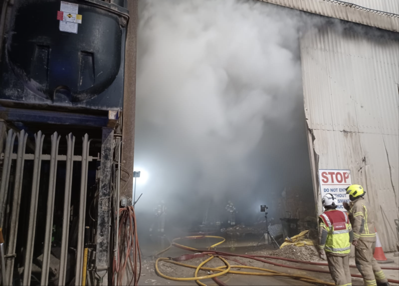 A large amount of waste materials were on fire, and residents in the area were advised to shut their windows and doors to keep the smoke out.