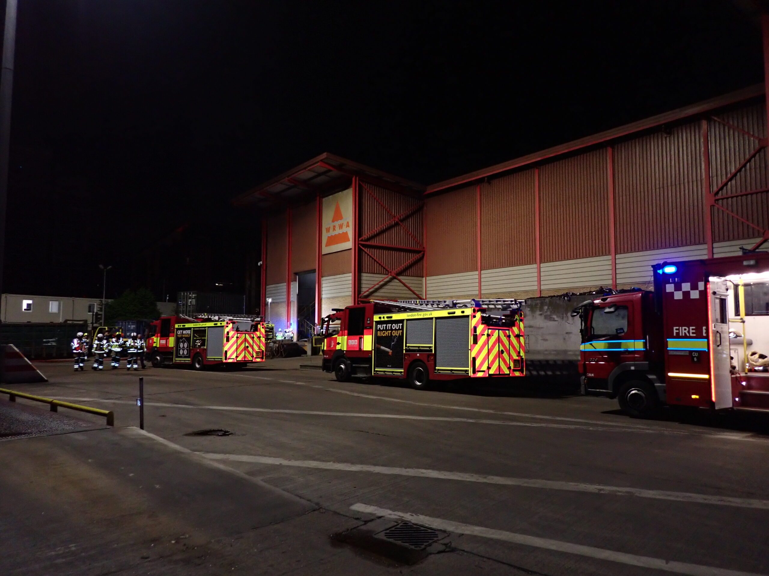 Six fire engines and around 40 firefighters tackled the fire at a recycling plant in Smugglers Way, Wandsworth overnight.