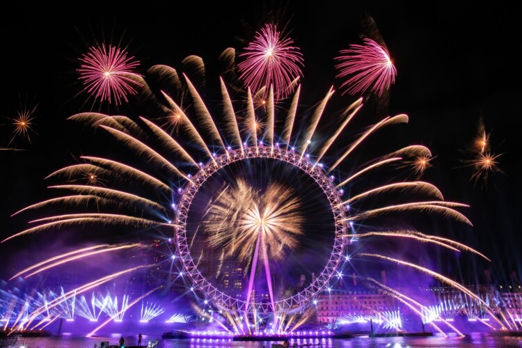 The show – organised by the Mayor of London, Sadiq Khan – featured 600 drones and 43 lights alongside the fireworks display beside the London Eye on the South Bank.