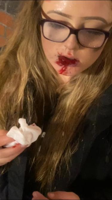 One firework shot off the floor and exploded in Holly’s face, leaving her with burns to her lips and cheeks.