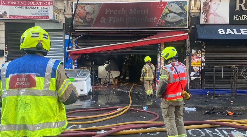 Six fire engines and about 40 firefighters tackled the blaze at the shop in Woolwich New Road, Woolwich, on Sunday morning.