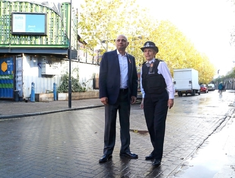 The picture shows Home Secretary Sajid Javid and Met Commissioner Cressida Dick on a visit to Brixton last month.