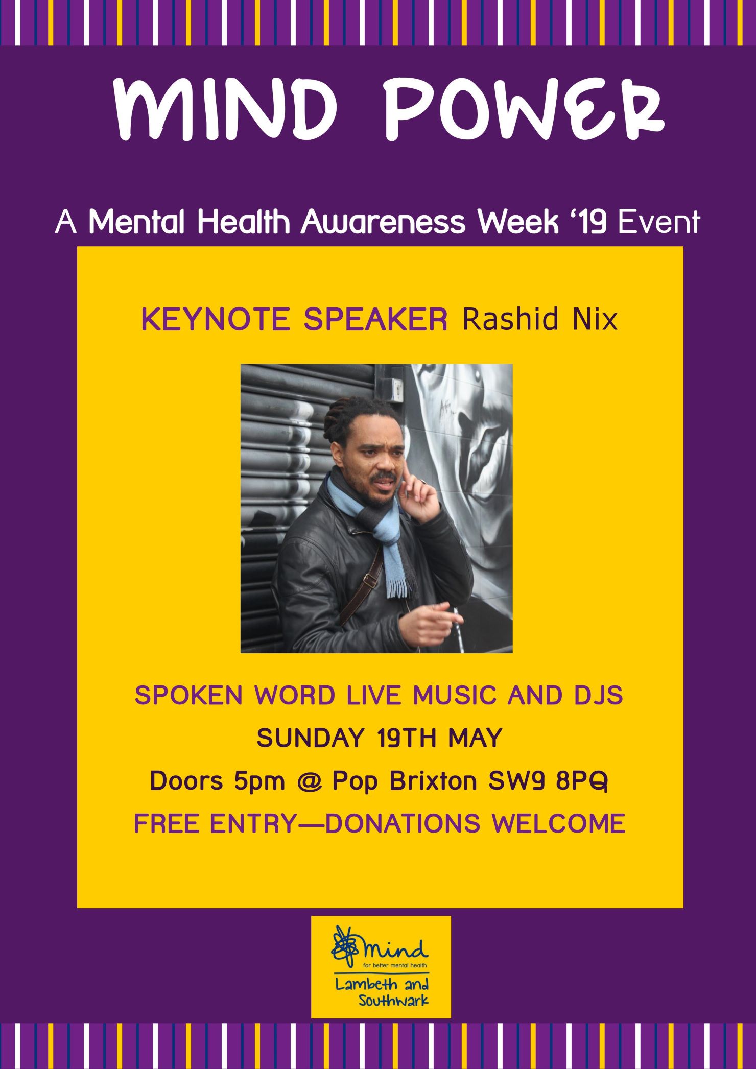 A Mental Health Awareness Week 2019 Event will feature a lecture on Black History as Therapeutic Practice.