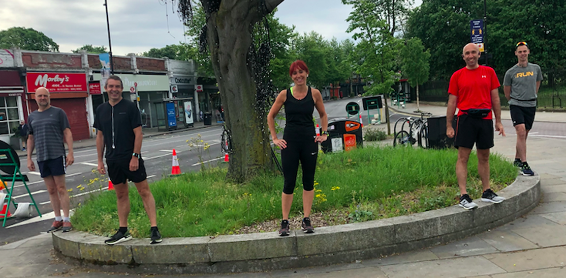The idea for running the lockdown marathon, on June 20, came from David Robbins – who painstakingly came up with the route too. The quintet are a chef and four company directors, all from Dulwich and will complete a total of 130 miles.