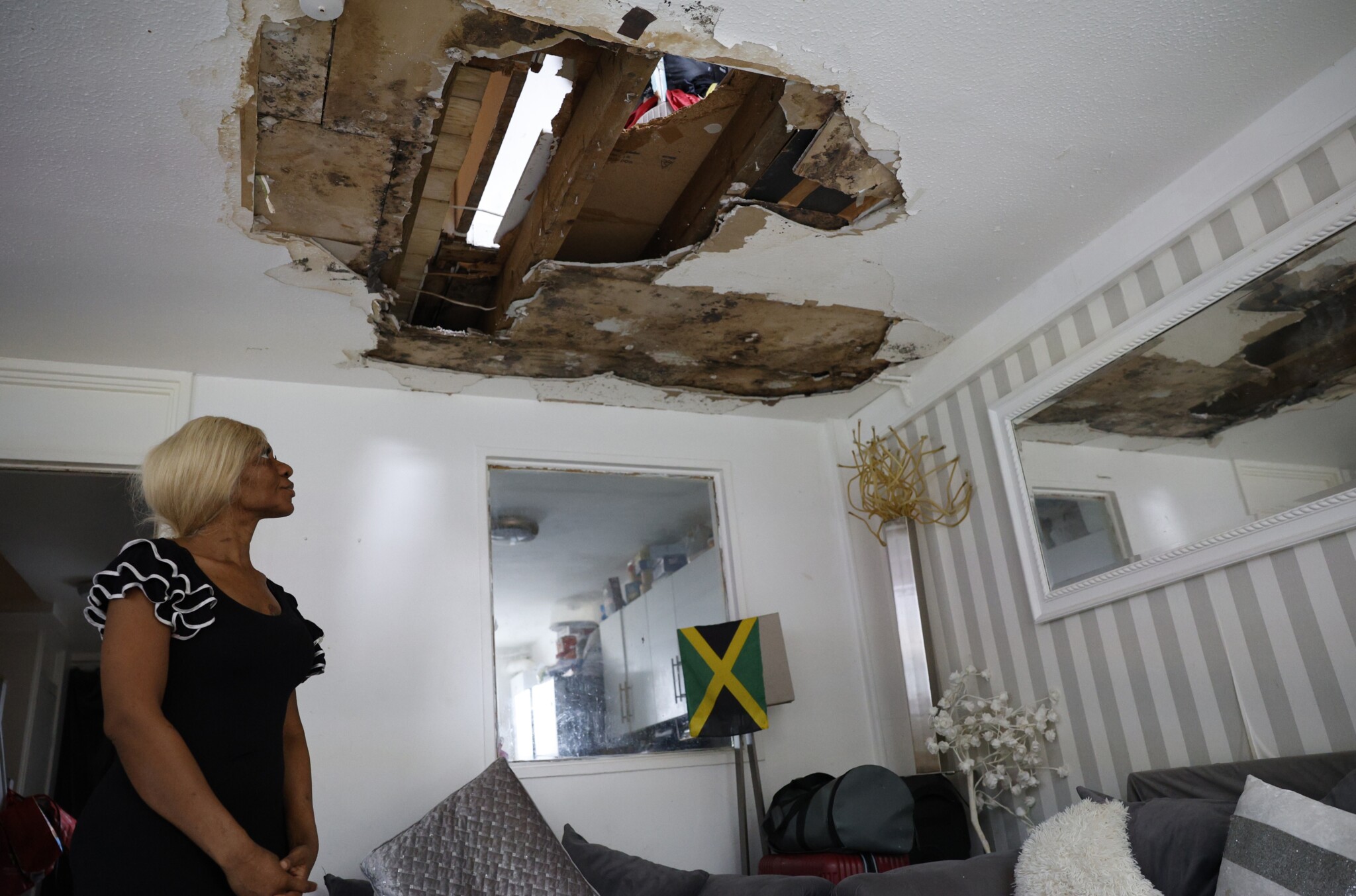Ms Berko alerted her landlord, Lambeth council, to the crater in her ceiling following the leak, but more than two years later she is still waiting for the hole to be repaired.