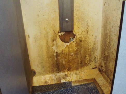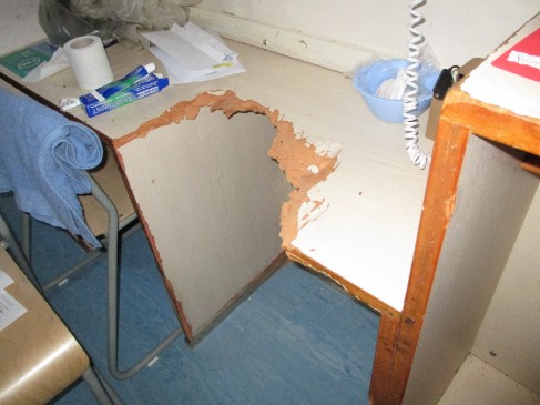 Damaged furniture and crumbling infrastructure were noted in the report (Picture: HMIP)
