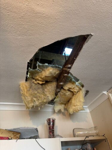 The 39-year-old said: “I heard this really loud noise, then a whole portion of my ceiling came down with one of the workers.